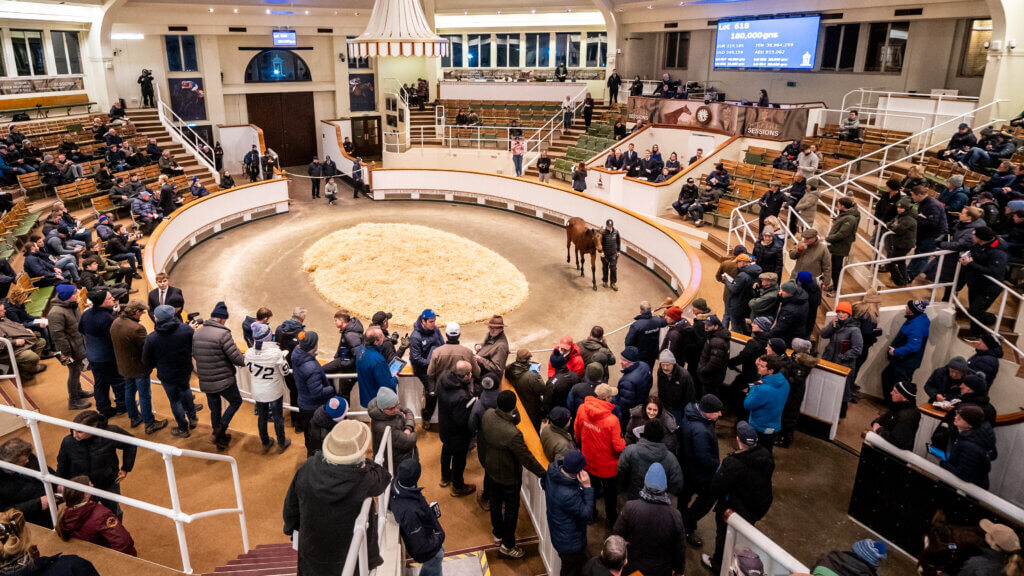 A packed sales ring at Tattersalls for Lot 618 | Image courtesy of Equuis Photography